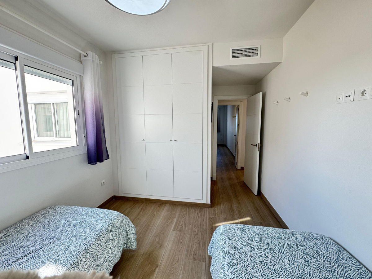 Excelente apartamento prácticamente casi a estrenar, muy bien cuidado por sus propietarios y práctico. Desde el salón tiene acceso a una amplia terraza donde poder pasar buenos ratos en familia o con amigos. Consta de dos habitaciones y dos baños, la habitación principal dispone de baño privado y salida a la misma terraza. Cocina totalmente equipada con todos los elecrodomésticos. También cuenta con plaza de parking subterráneo.