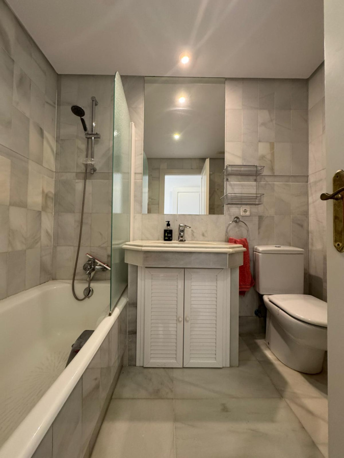 Podemos destacar de este apartamento, las vistas a la playa y lo acogedor que resulta, amplio y luminoso con acceso directo desde el salón a una terraza privada donde disfrutar de una magnifica velada en familia. Consta de dos dormitorios con armarios empotrados, dos baños, disponiendo la habitación principal de baño privado con bañera. Cocina equipada con todos los electrodomésticos y utensilios de cocina. Sólo por el interior tan bonito del apartamento y su terraza con vistas al mar, merece la pena para unas magníficas vacaciones.