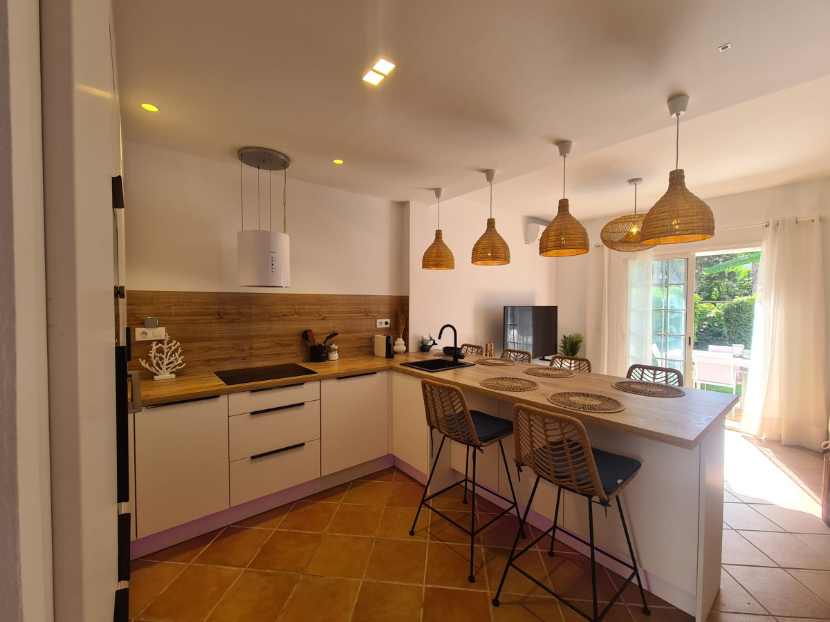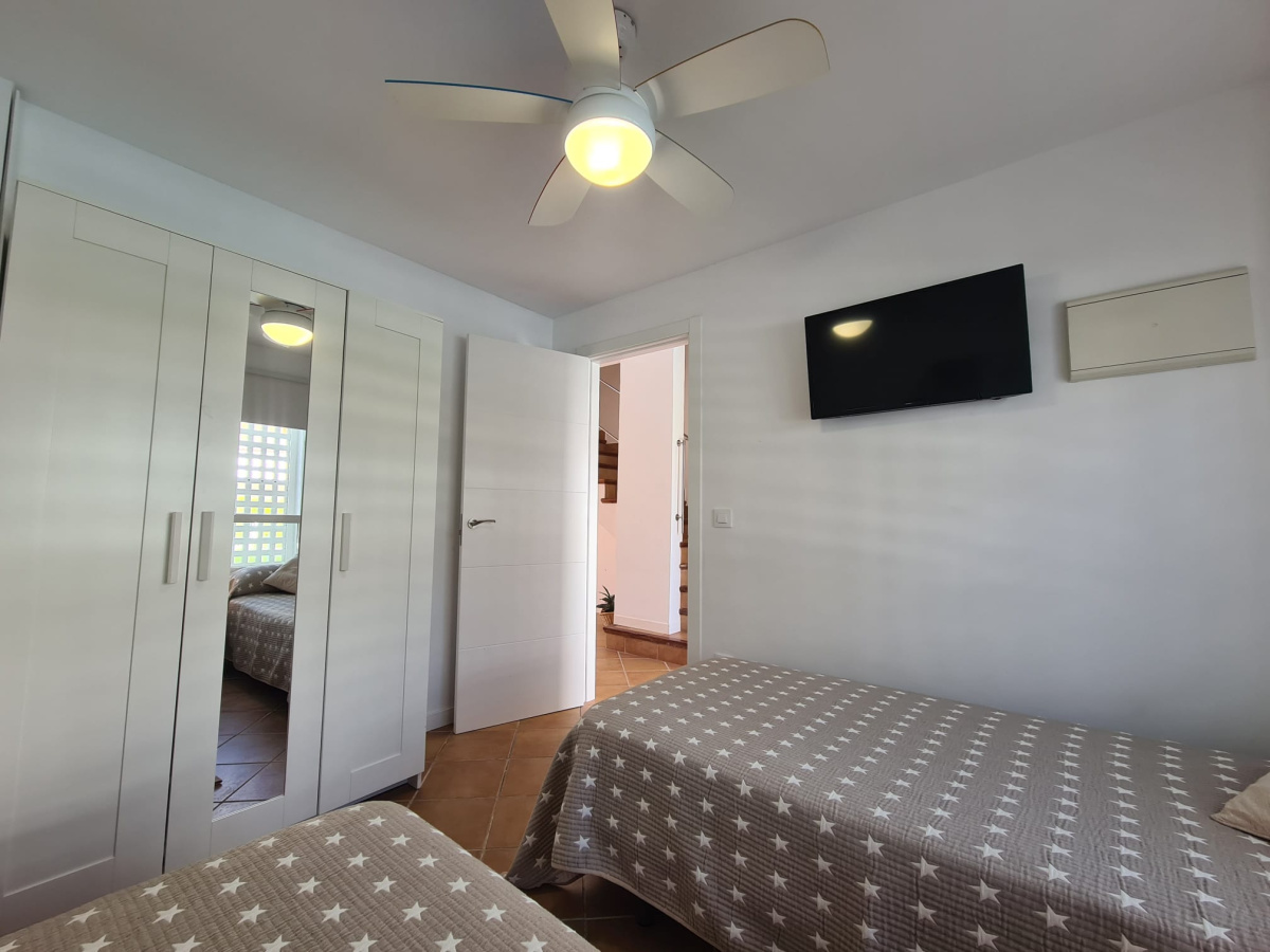 Casa muy acogedora, lo que más gusta es su amplitud, tanto en el Salón, como en la cocina con lavadero, como en sus dos habitaciones. La casa consta de dos plantas; en planta baja podemos encontrar un amplio salón con salida a un coqueto jardin con barbacoa de piedra, donde pasar una perfecta velada en familia o con amigos, aseo con plato de ducha y cocina totalmente equipada y lavadero. En la planta alta encontramos dos amplias habitaciones y un baño con plato de ducha. La habitación principal tiene acceso a una terraza amplia donde poder descansar en unas merecidas vacaciones.