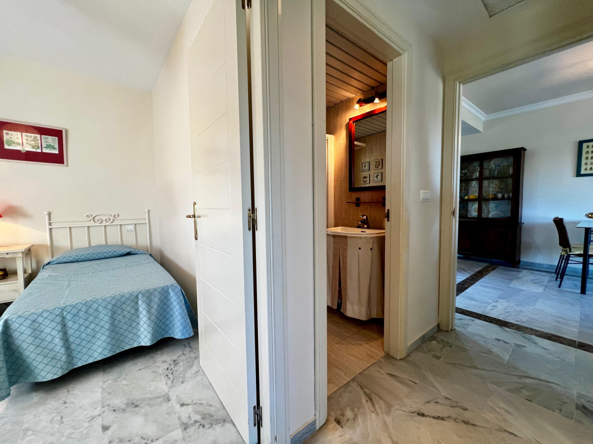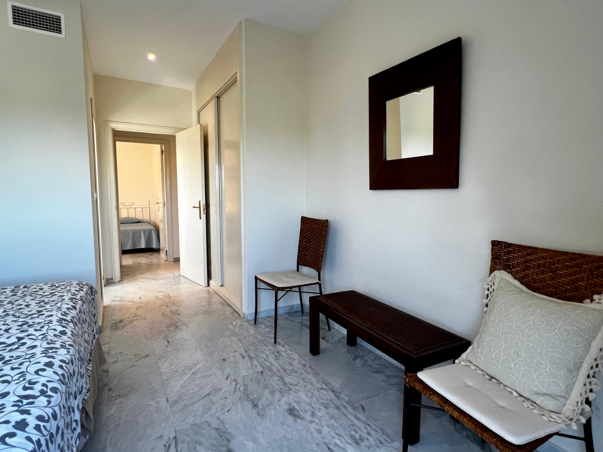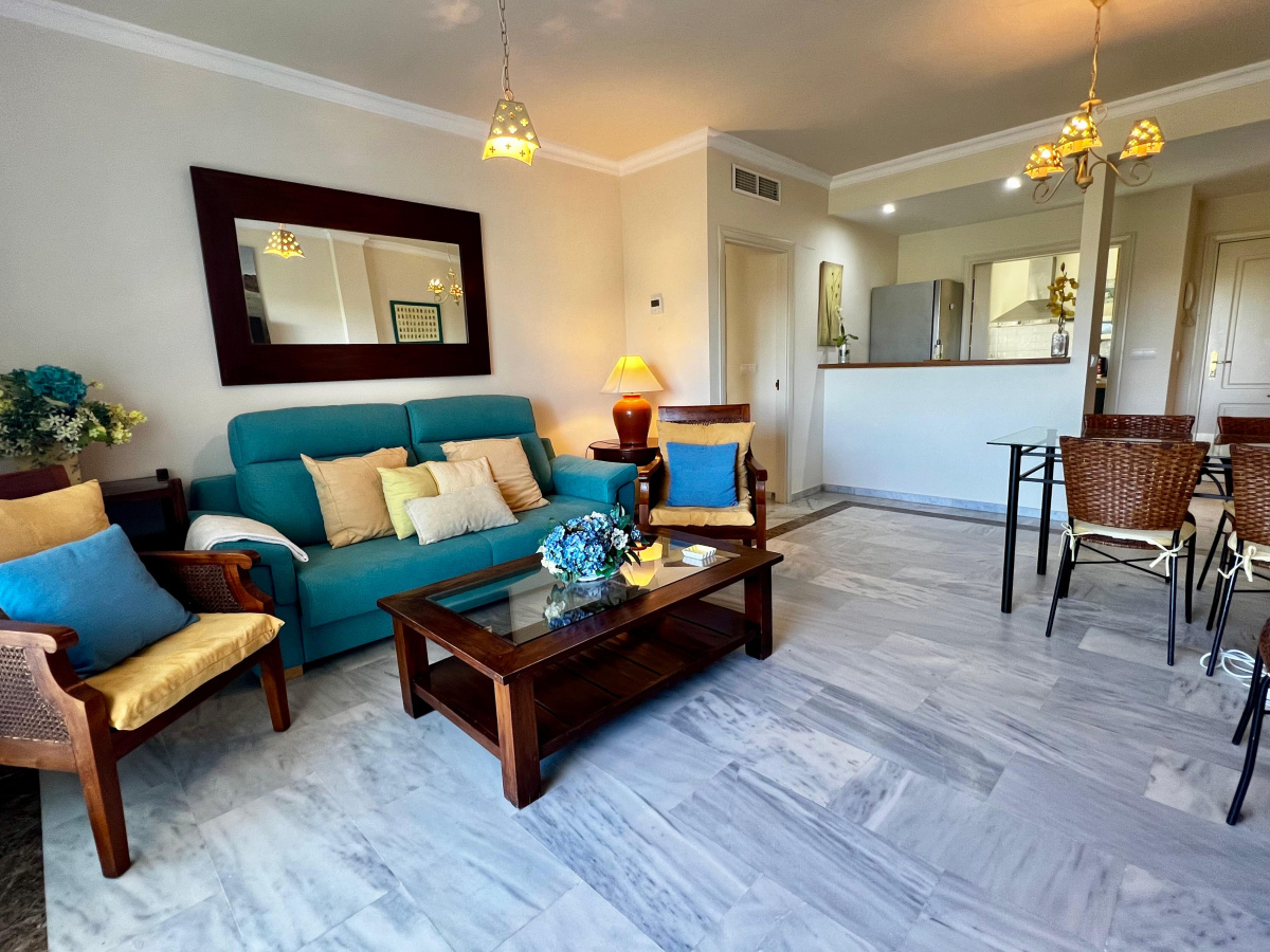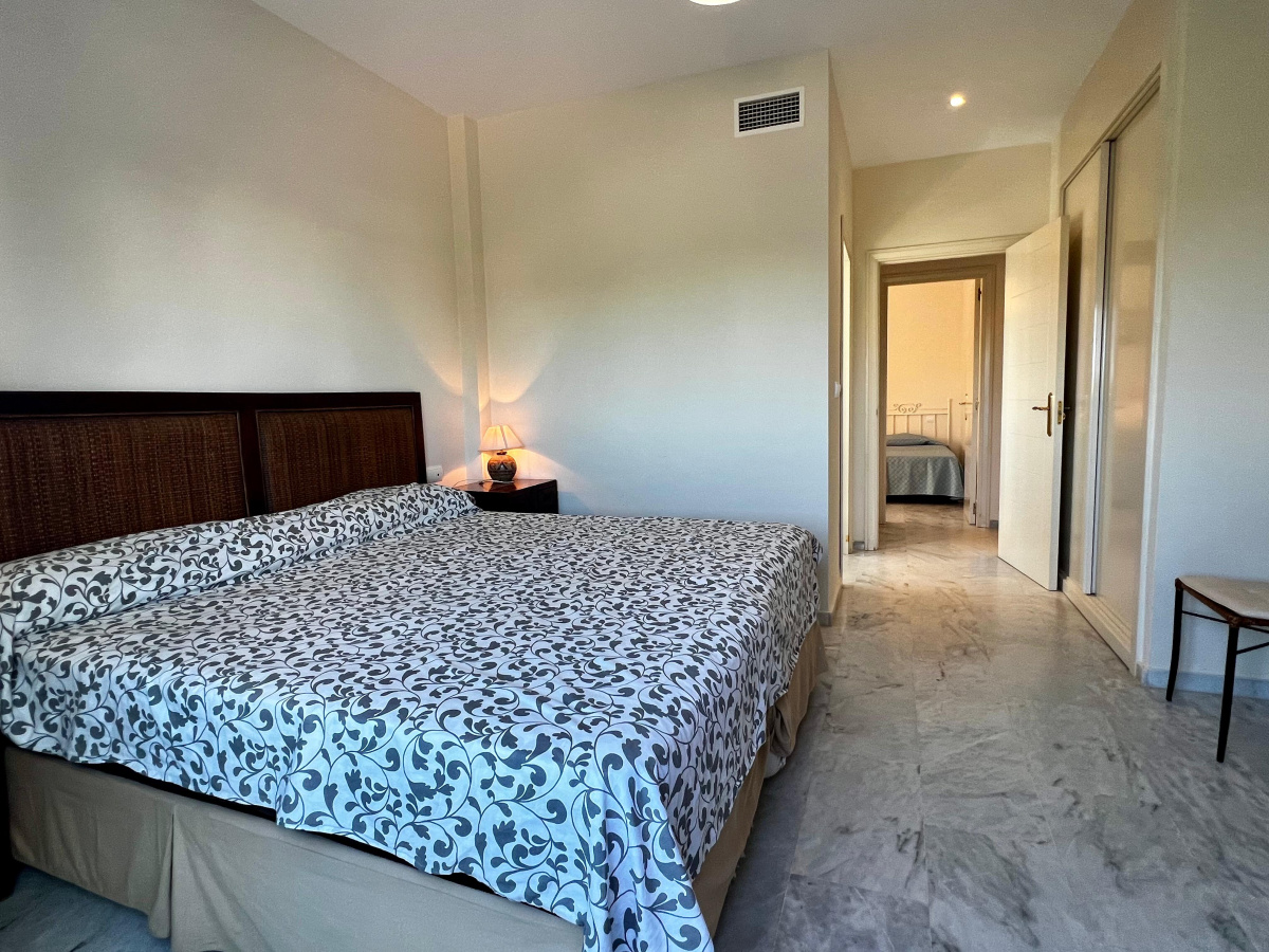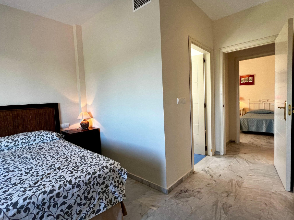 Apartamento perfectamente cuidado por sus propietarios, que siempre deja conforme a sus clientes. Podemos destacar su luminosidad, con amplia terraza para disfrutar en familia con salida desde el salón y vistas al Campo de Golf, se compone de dos dormitorios, dos baños, la habitación principal cuenta con un baño privado y un balcón con unas vistas privilegiadas que hacen la estancia aún más acogedora, cocina totalmente equipada con lavadero y parking subterraneo. Ideal para disfrutar en familia de unas merecidas vacaciones.