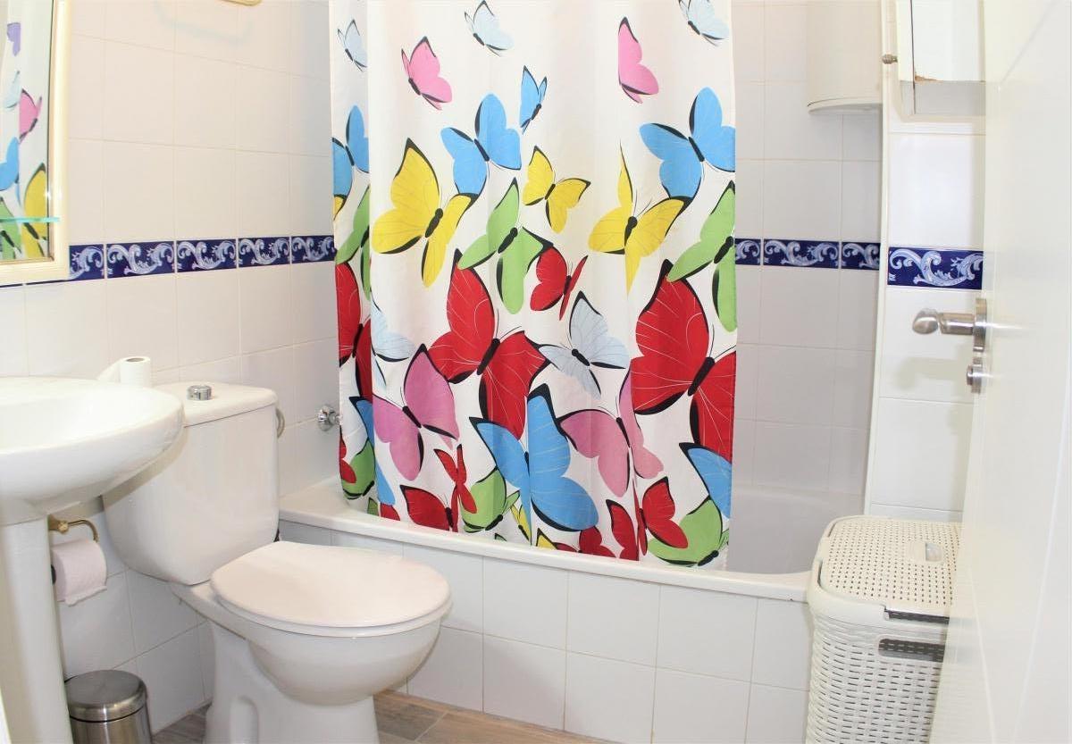 El apartamento tiene dos dormitorios, un baño, cocina independiente, salón con aire acondicionado y una terraza con mobiliario de jardín y toldo con vistas al jardín y la piscina. El apartamento también tiene servicio de internet.