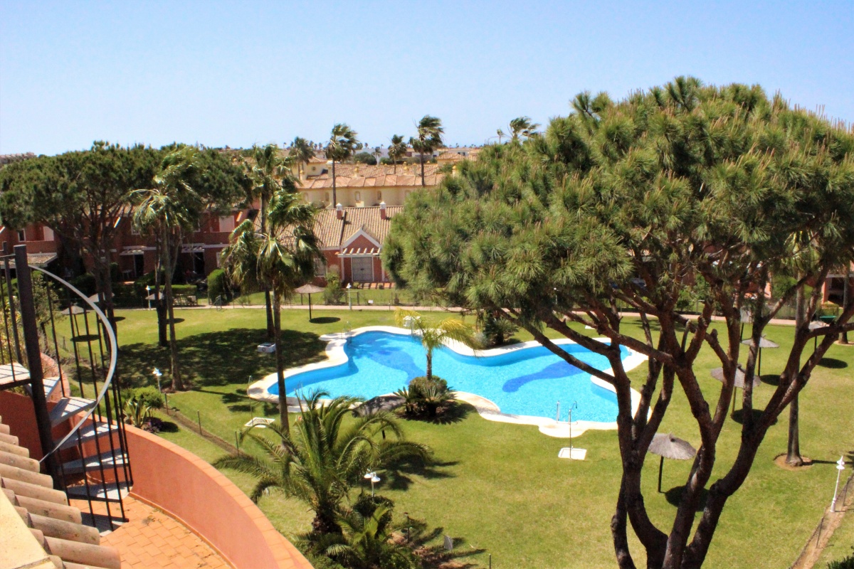 Estupendo residencial compuesto por apartamentos y adosados en la zona de Novo Sancti Petri. Situado a 1.5km de la playa ( 15 min a pie) y rodeado de campos de golf. Junto al residencial encontramos todos los servicios de la zona , club de padel y tenis y centro comercial Novo Center (restaurantes, cafeterías, supermercado, farmacia,alquiler de coche, ocio nocturno...)